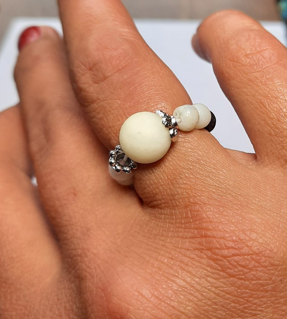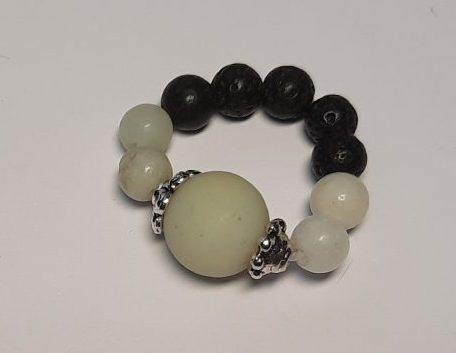 Farbe der Perlen: cremefarben, schwarz mit typischer Lavastein-Struktur