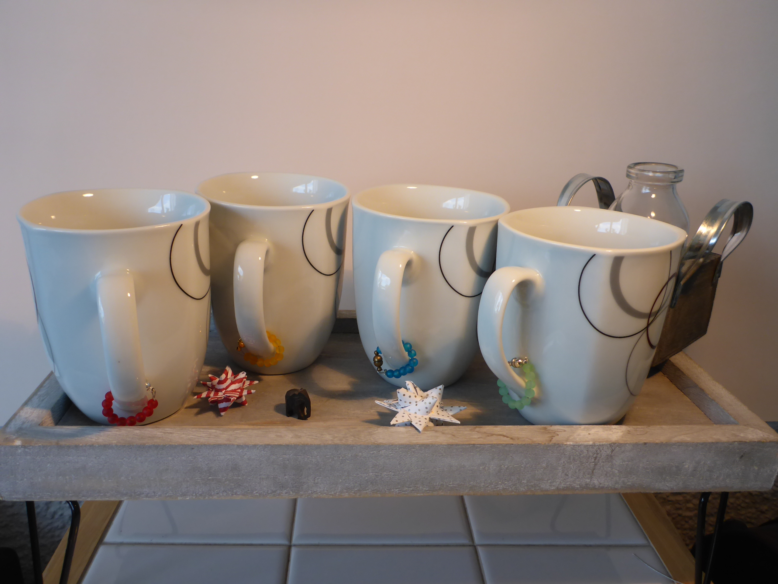 Dieser kleine Perl-Anhänger hält mit einem Mini-Magnetverschluss und kann ganz leicht um den Griff der Tasse gelegt werden. So findest du deine Tasse auf jeder Familienfeier wieder 🙂