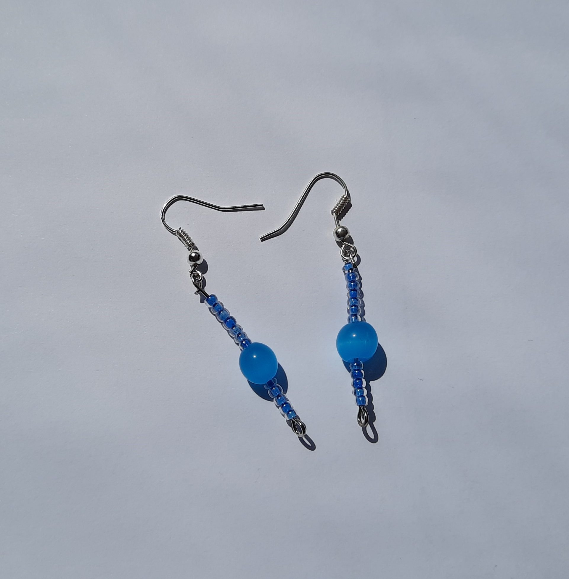 Schöne, schlichte blaue Ohrringe aus Glasperlen.