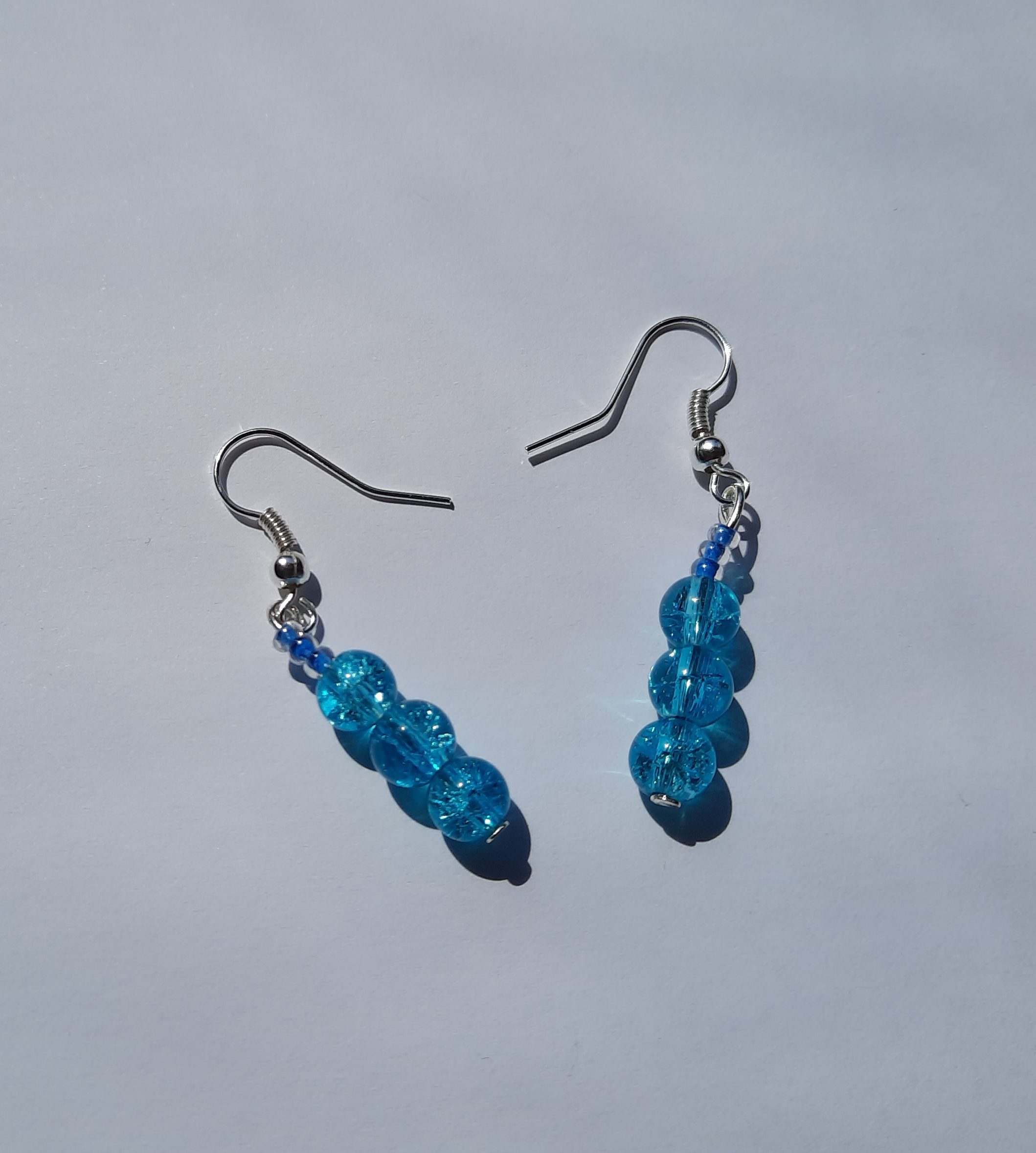 Schöne, schlichte blaue Ohrringe aus Glasperlen mit Glitzereffekt.