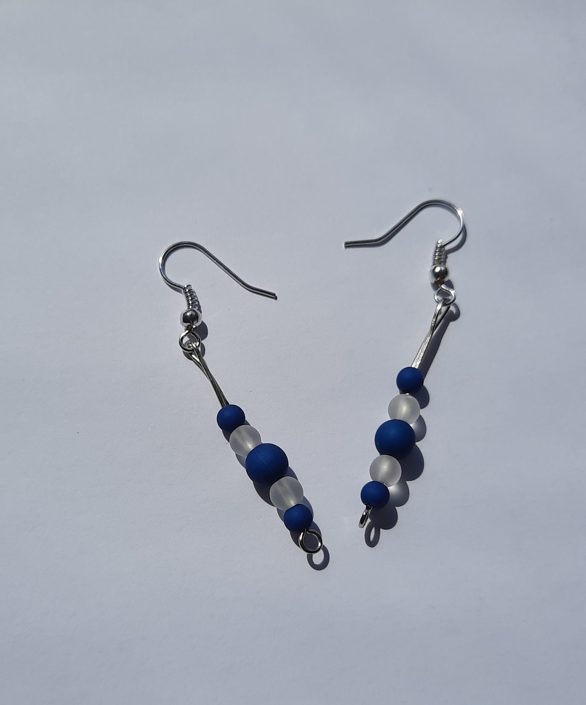 Schöne Ohrringe Glasperlen in weiß und blau.