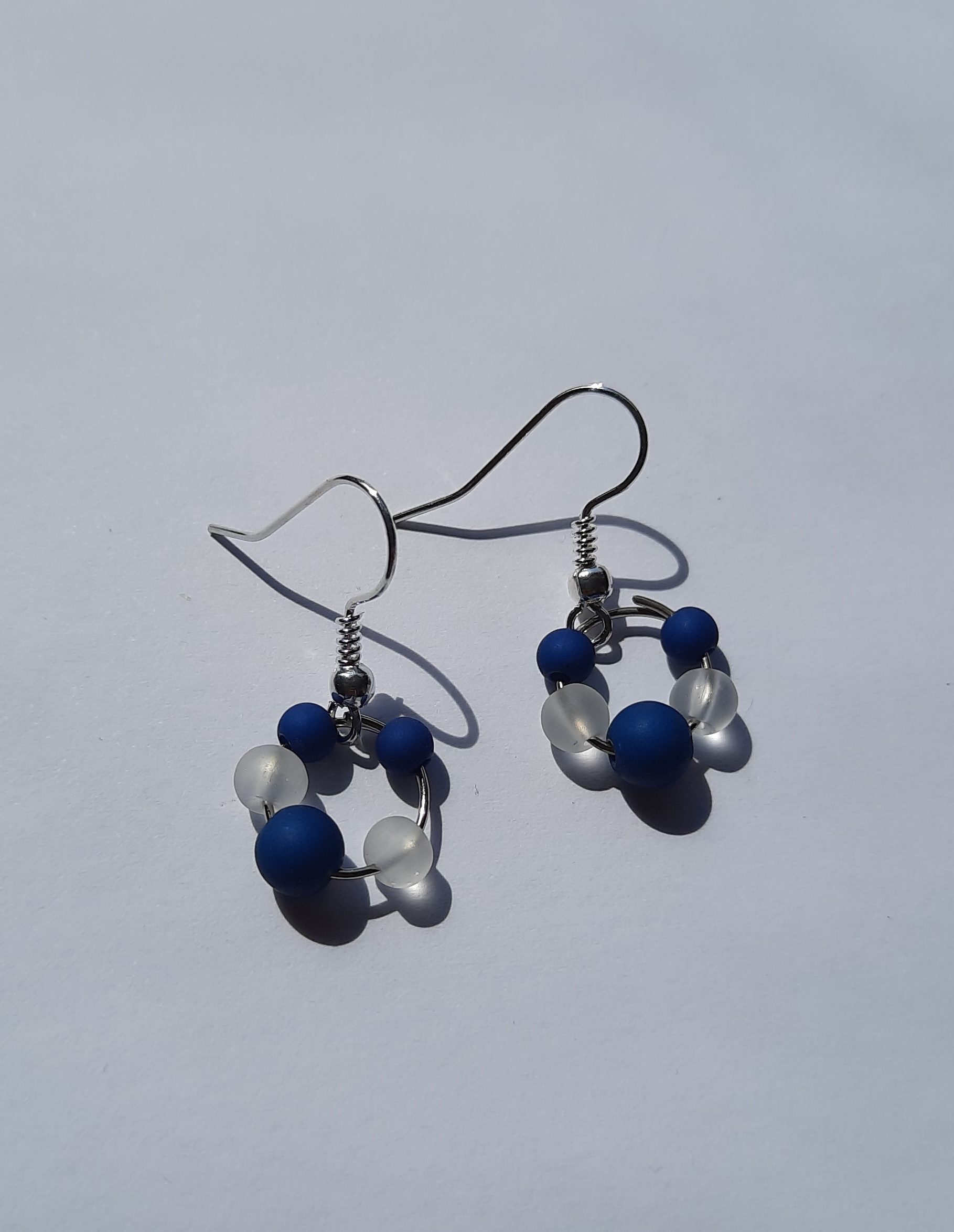 Schöne Ohrringe Glasperlen in weiß und blau als runde Variante.