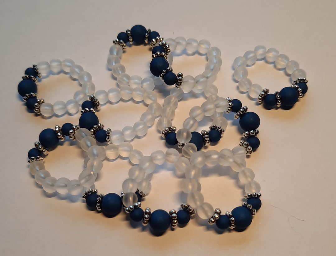 Art der Perlen: Glasperlen, matt gefrostet, Acrylperlen preußisch blau, matt