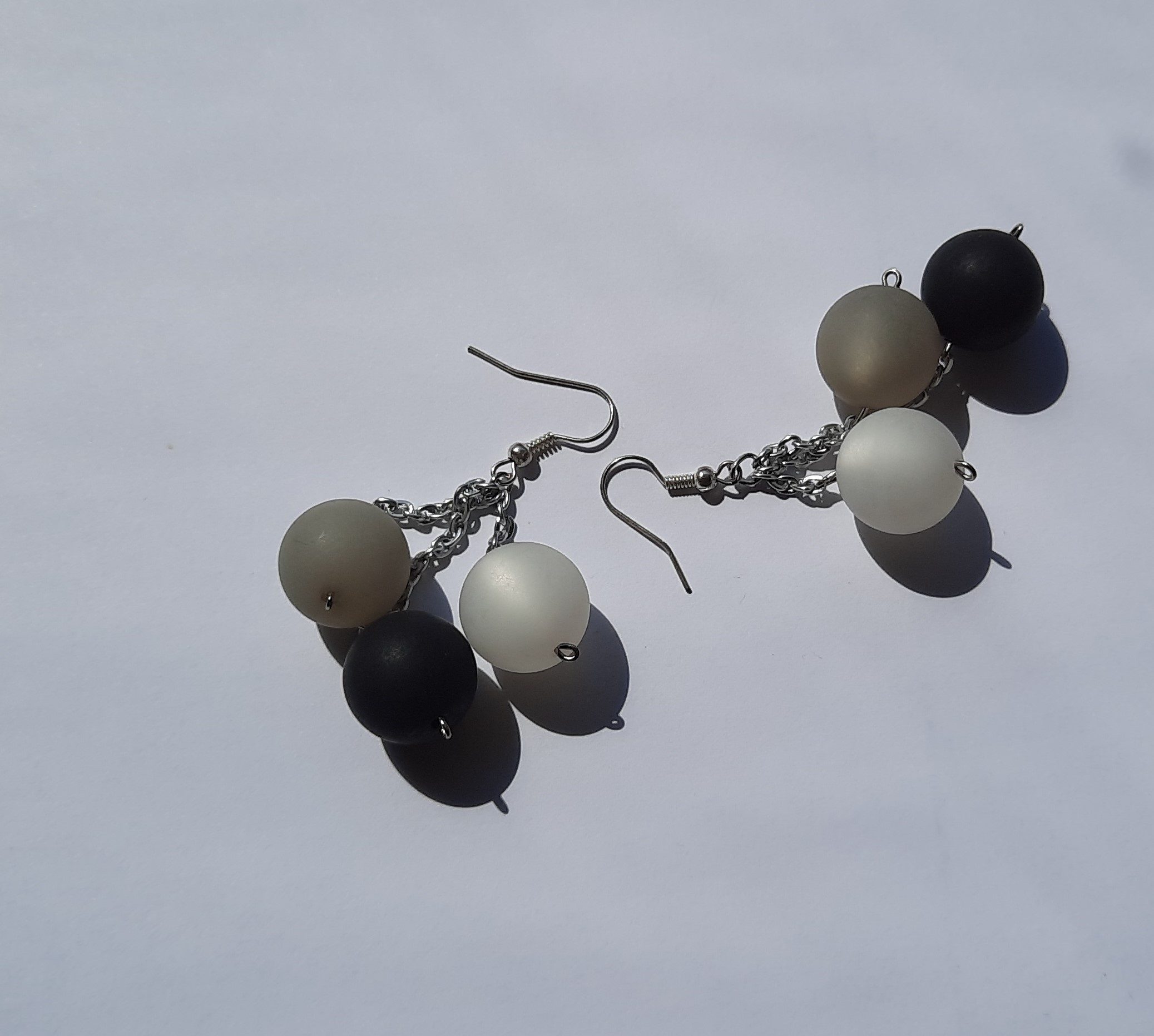 Sehr originelle Dreier-Ohrringe mit schönen matten Perlen.