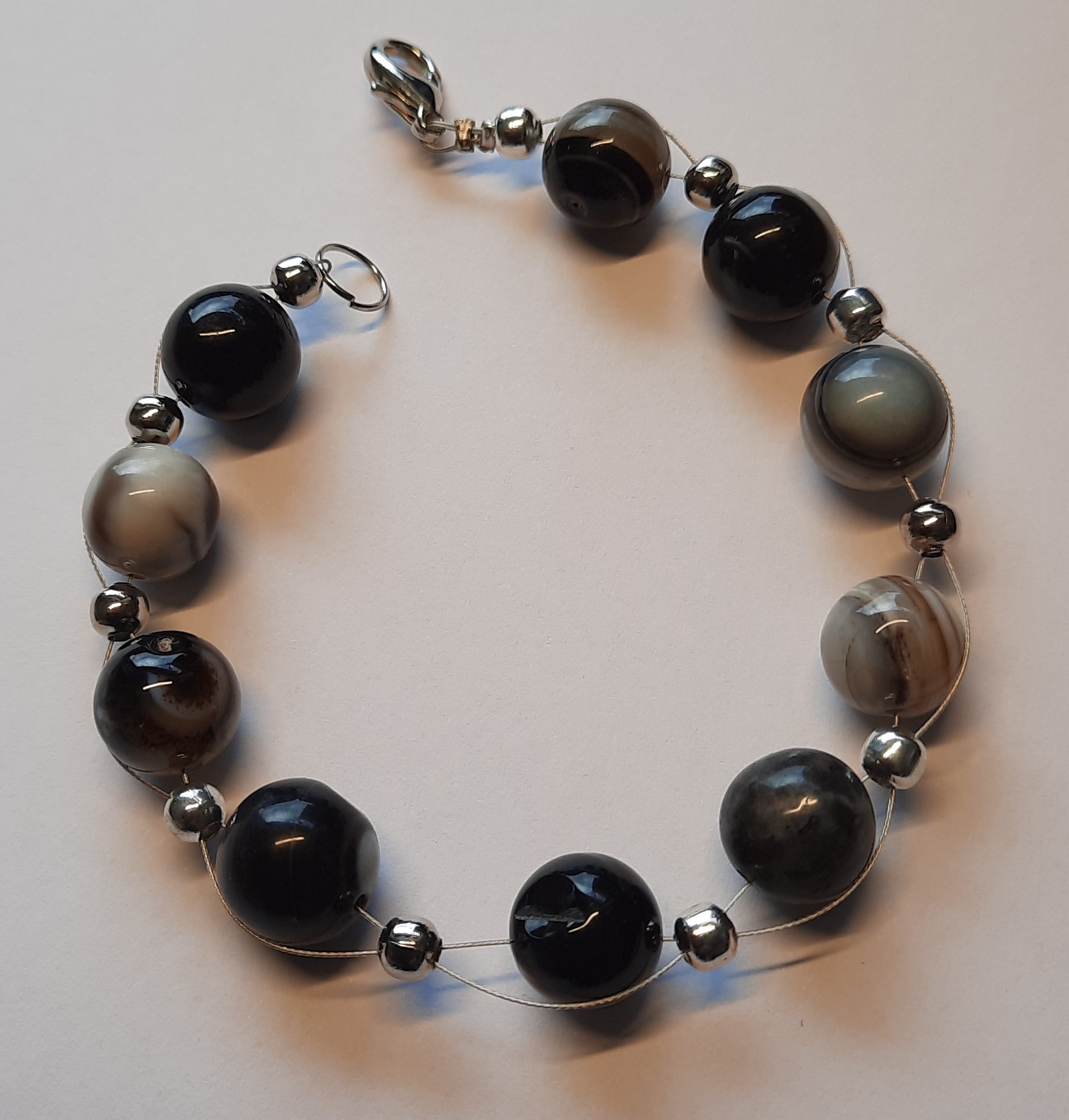 Schönes Armband aus Achatperlen mit unterschiedlicher Struktur und Farbe. Die kleinen silbernen Perlen machen dieses Armband einzigartig