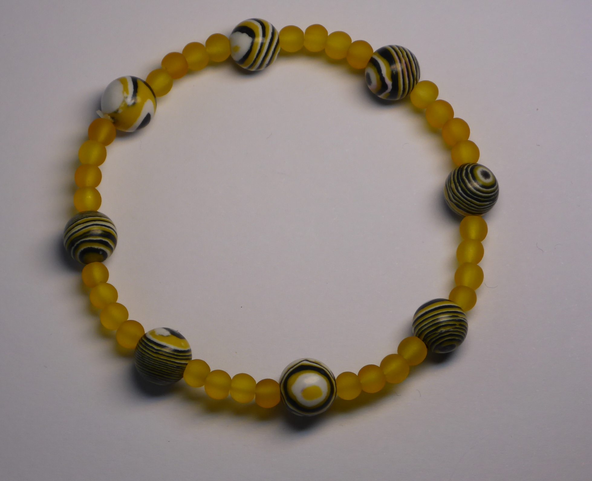 Farbe der Perlen: braun, gelb-schwarze Struktur, gelb
