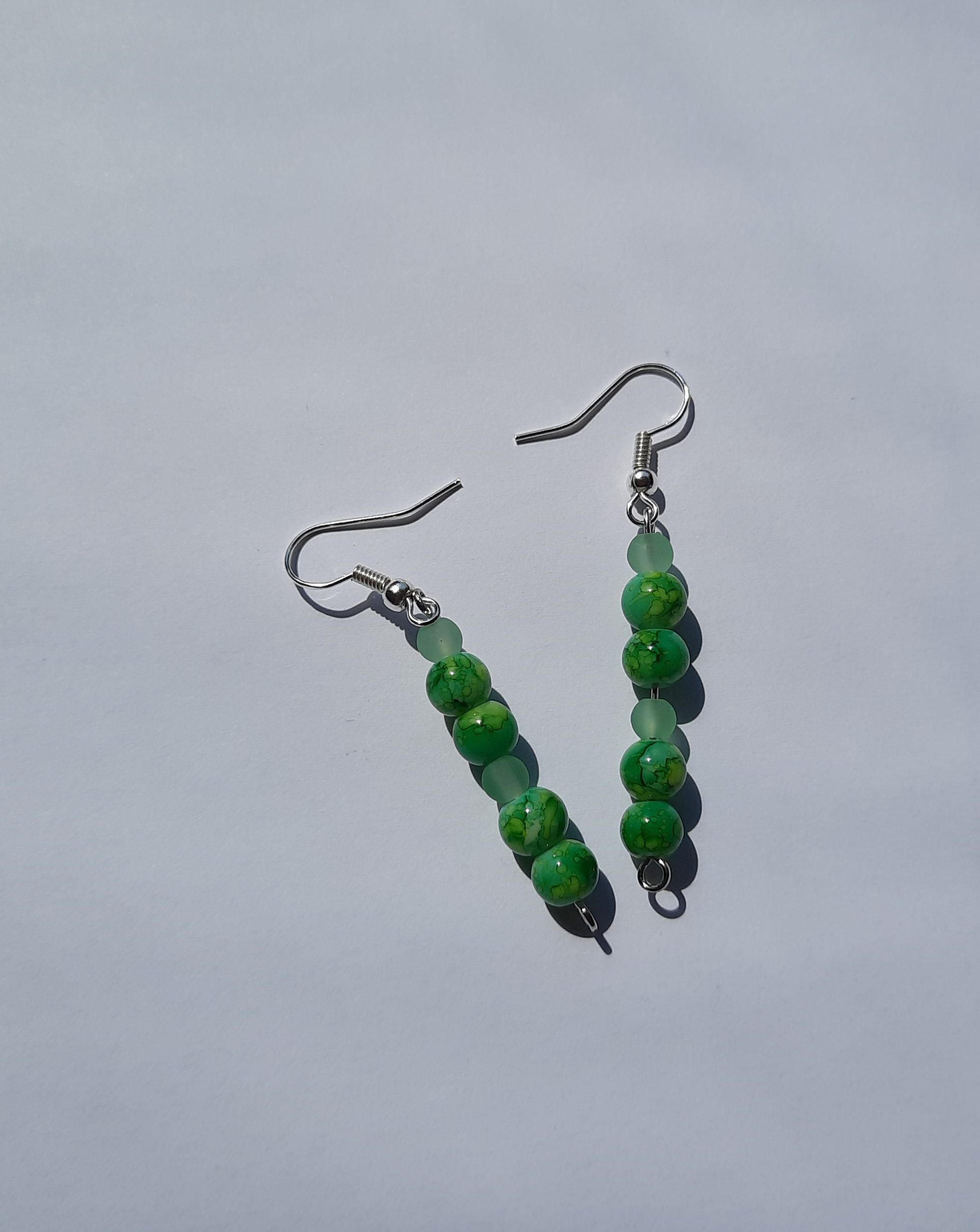 Schöne, etwas längere Ohrringe aus marmorierten Glasperlen und matten Glasperlen.