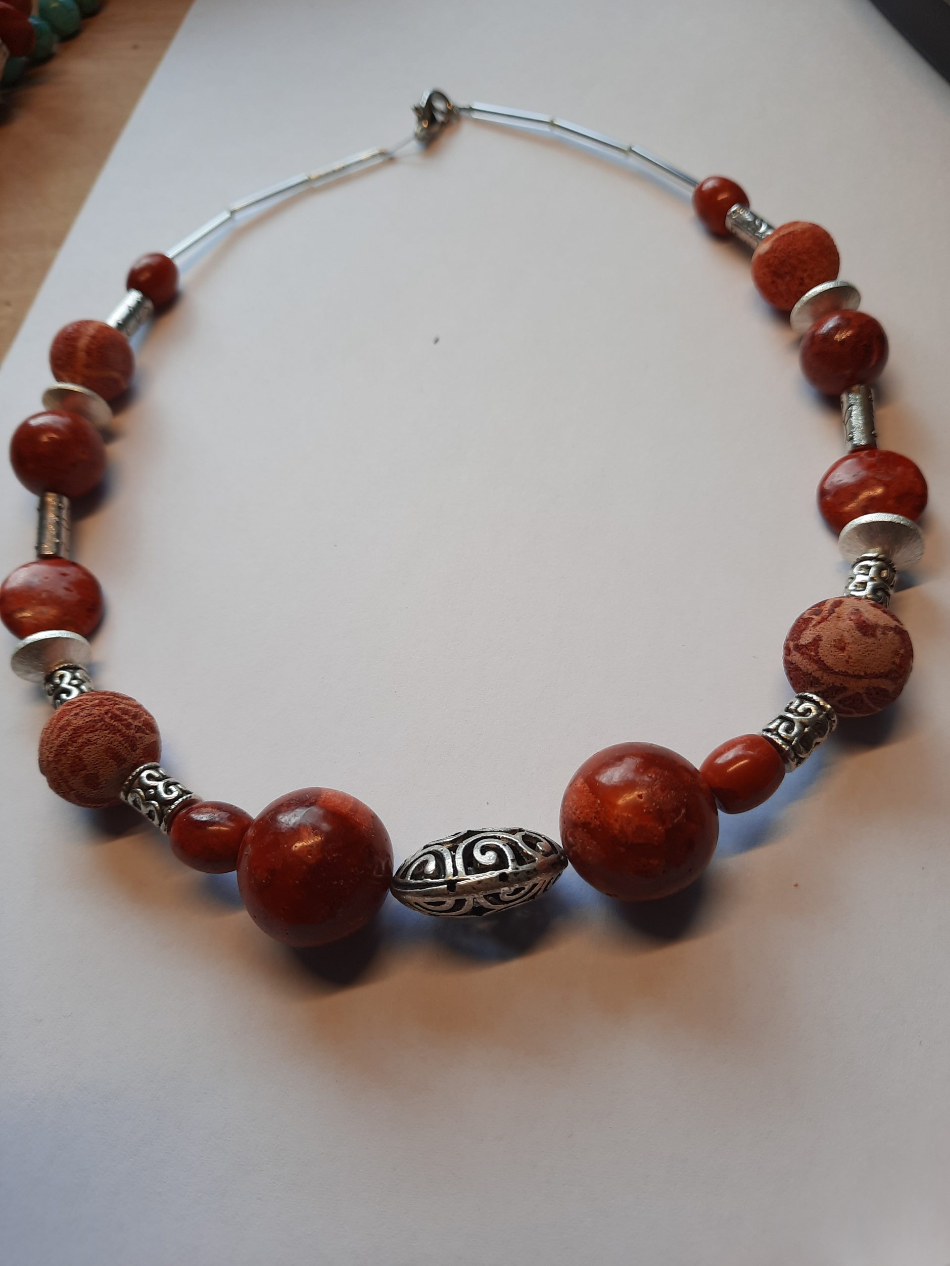 Schöne Halskette aus roten Korallen- und Lavaperlen