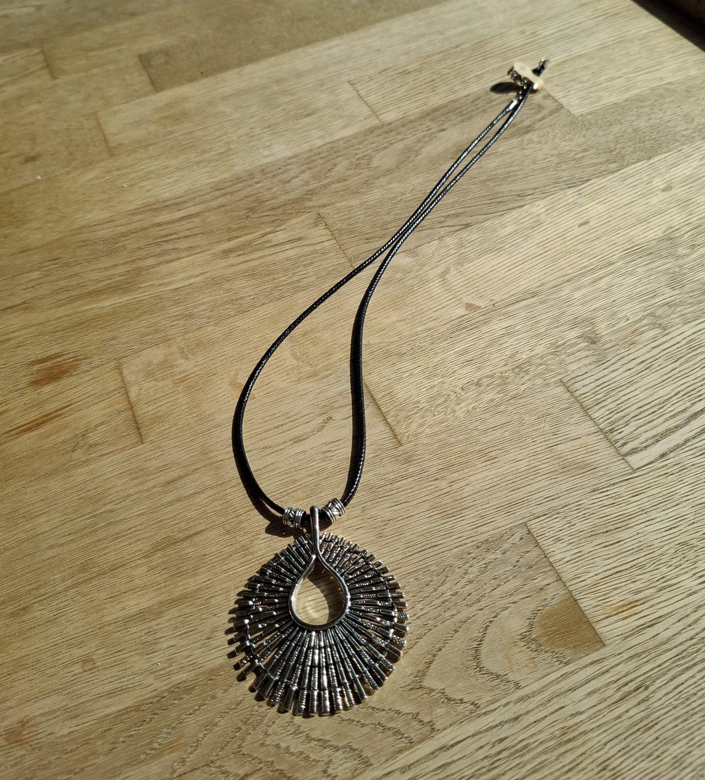 Sie kann bequem über den Kopf gezogen werden und sieht auf jedem Kleidungsstück schön aus. Sie hat einen Karabiner-Verschluss mit einer kleinen Verlängerungskette, sodass du die Länge selber anpassen kannst.