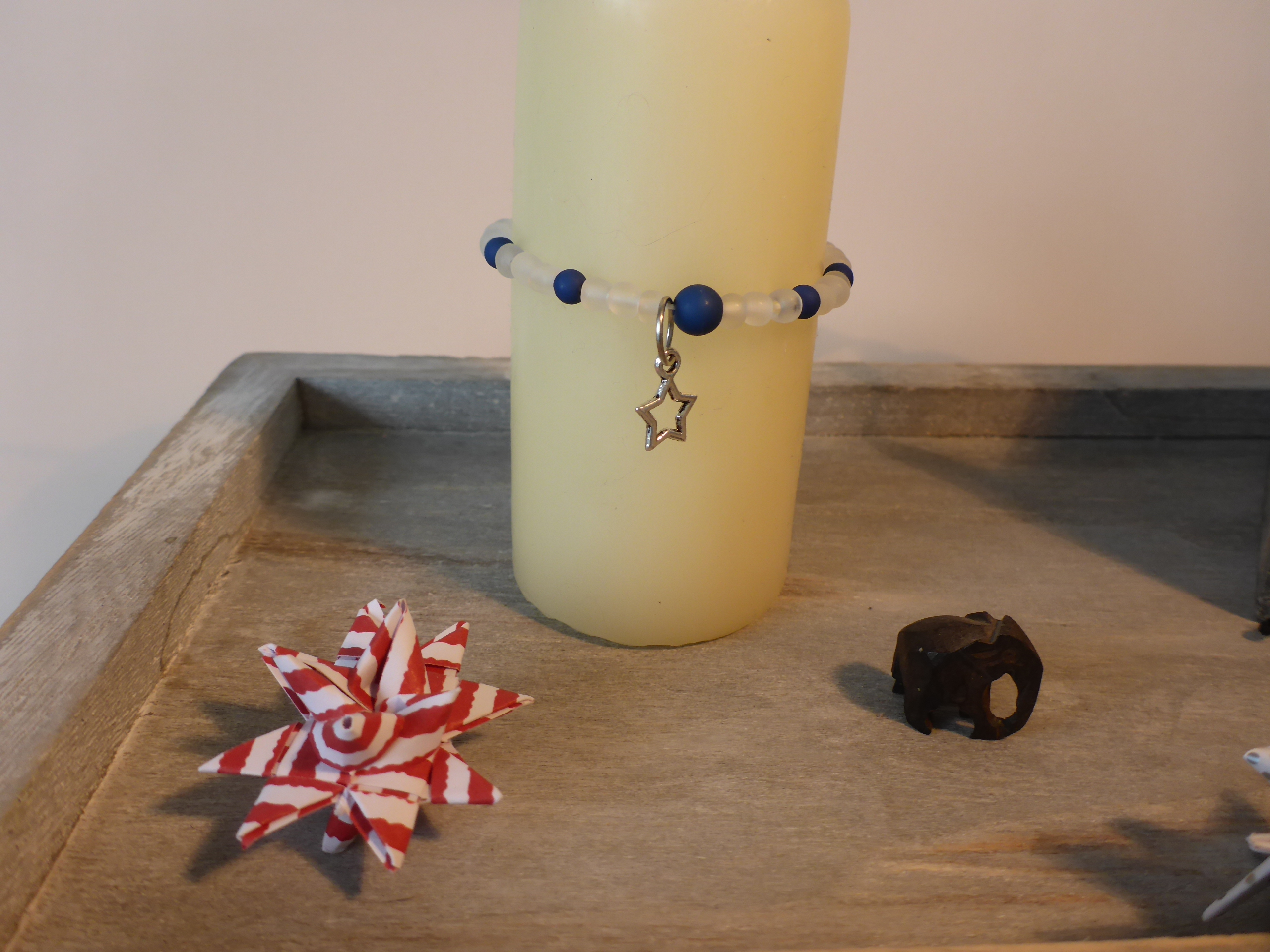 Zur Auswahl stehen mehrere Schmuckstücke in verschiedenen Farben und mit unterschiedlichen Anhängern. Sie passen um eine Stumpen-Kerze mit einem Umfang von 14cm, aber natürlich fertige ich auf Wunsch auf für dickere Kerzen dein Schmuckstück an. Einfach eine Mail an mich schreiben.