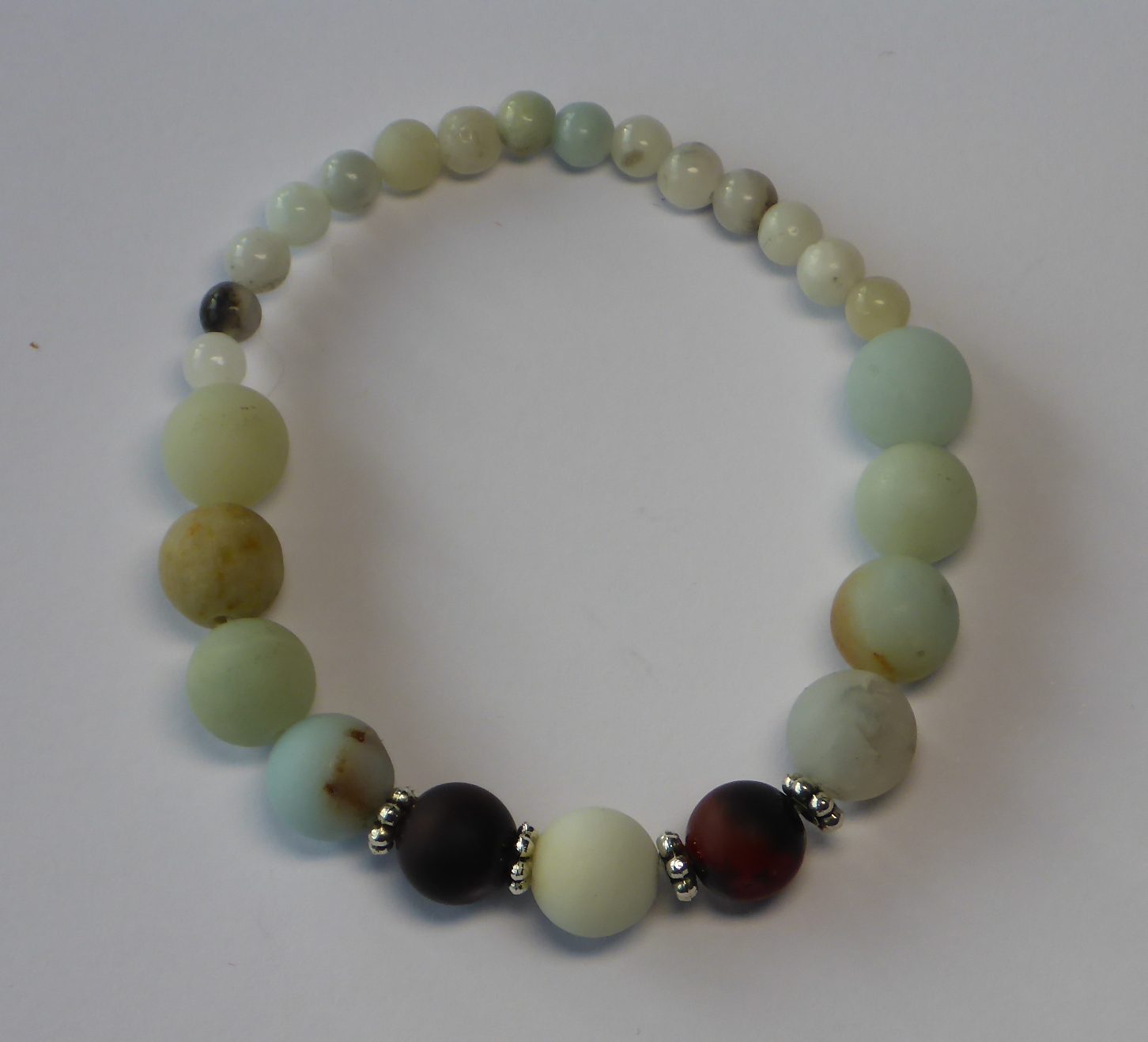 Schönes Armband aus Amazonit Perlen und silbernen Zwischenteilen.