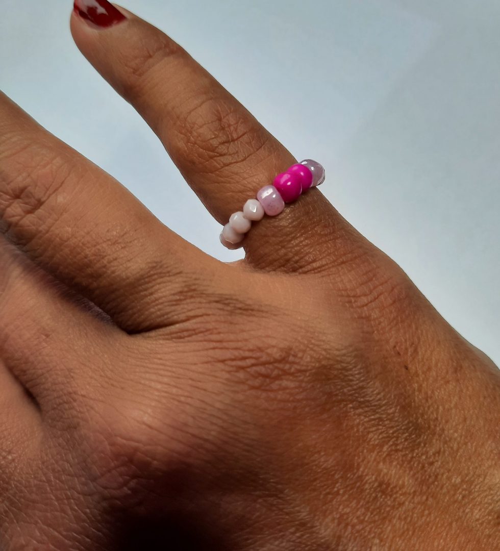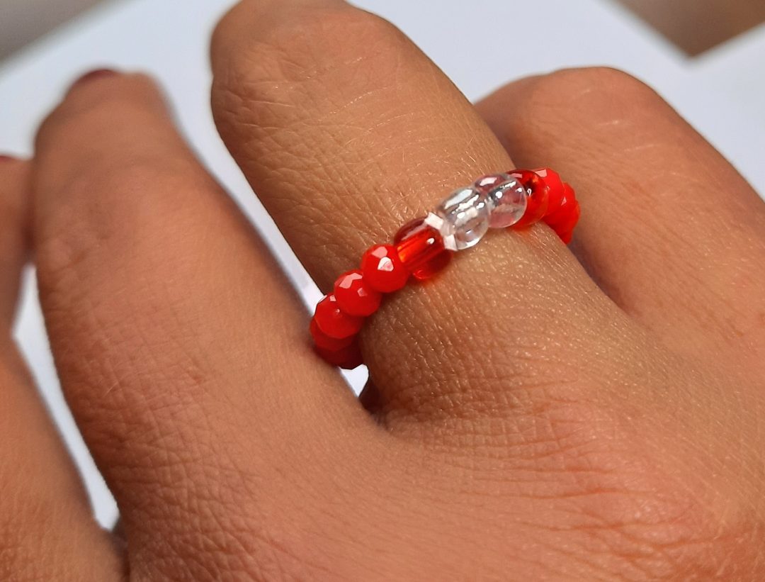 Farbe der Perlen: rot und transparent bzw. rosa und pink