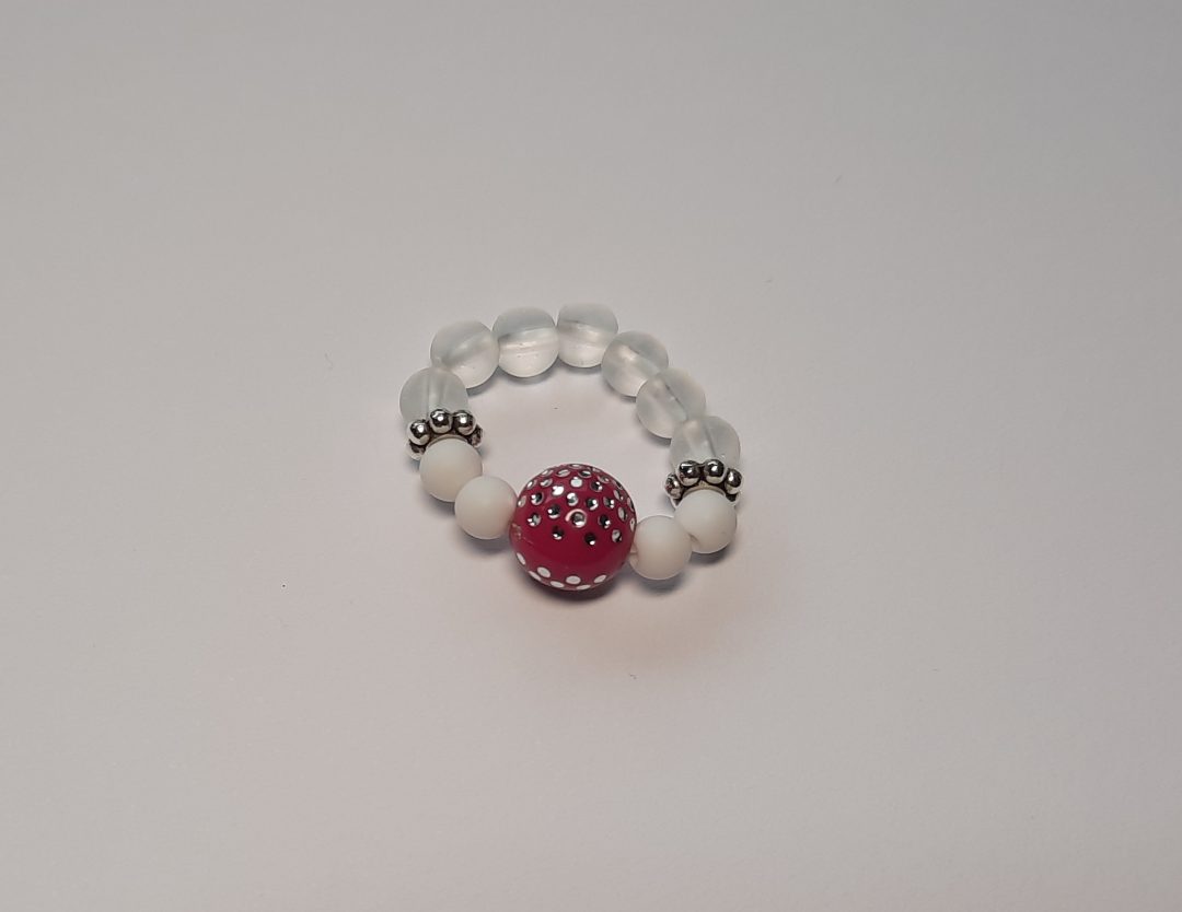 Art der Perlen: Glasperlen, matt gefrostet, manche mit kleinen Glasperlen, 1 größere Acrylperle mit Glitzereffekt