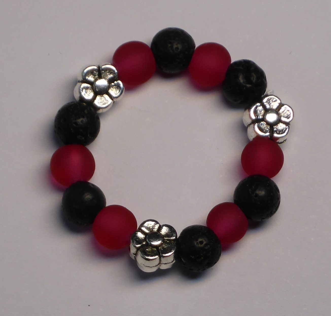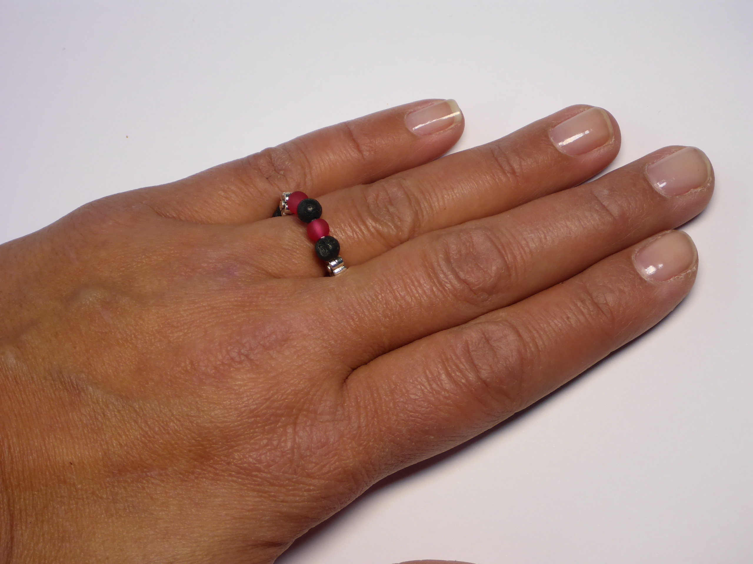 Farbe der Perlen: rot, schwarz mit typischer Lavastein-Struktur
