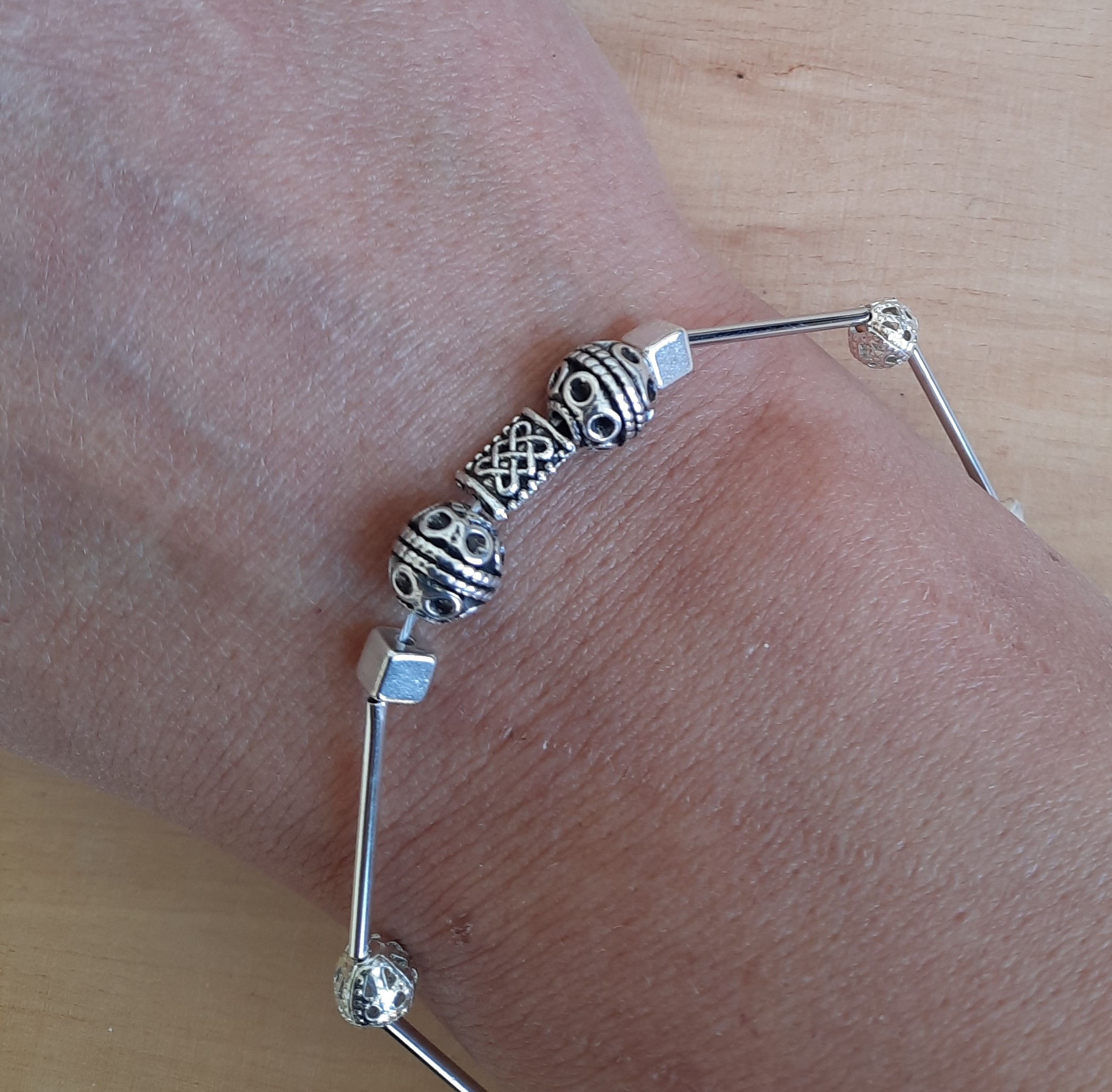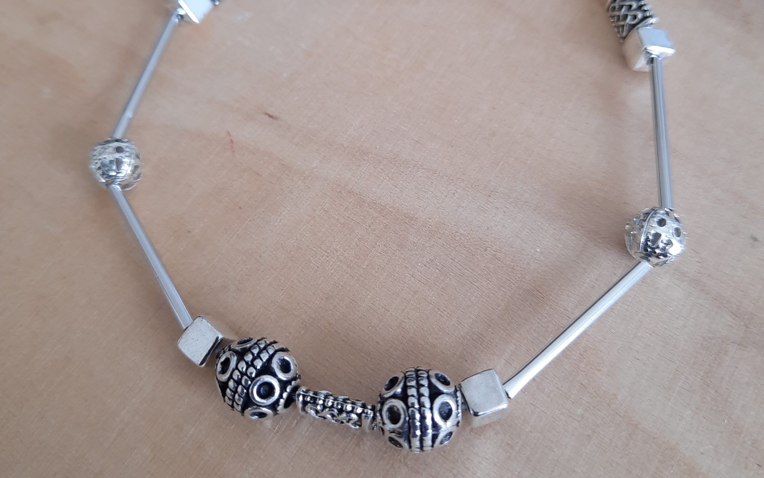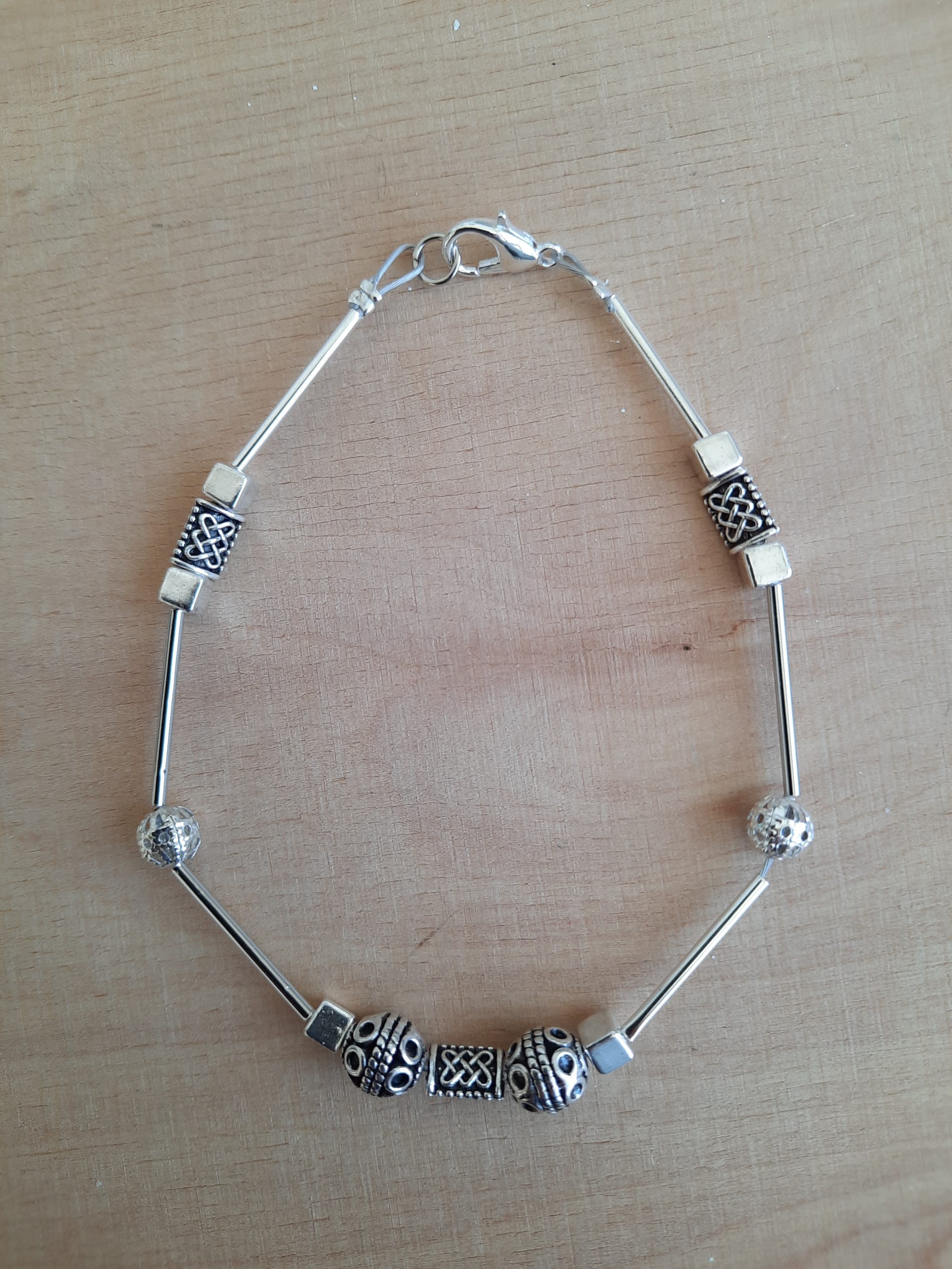 Schönes Armband aus ganz vielen silbernen Elementen und Zwischenstücken.