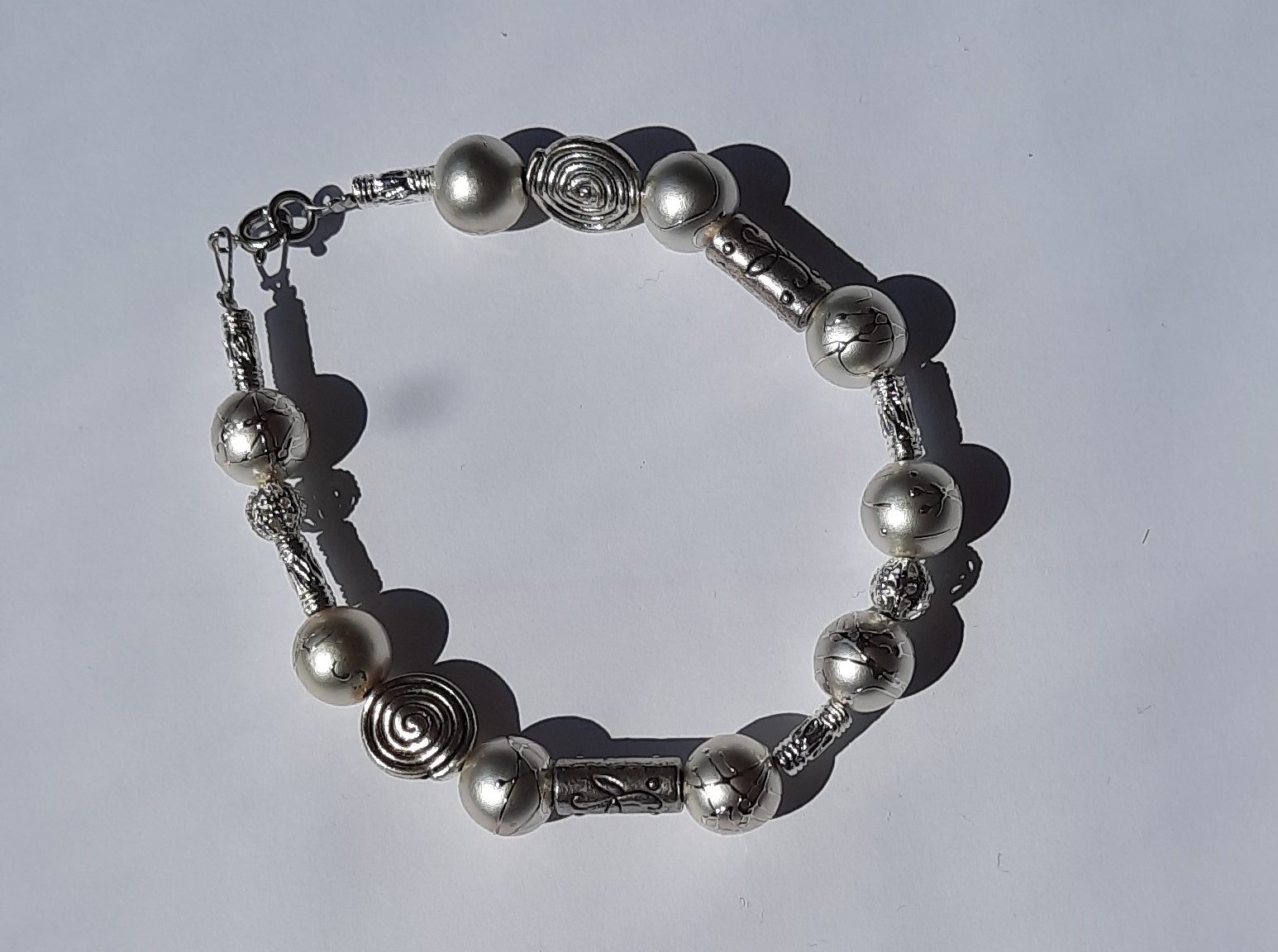 Schönes Armband aus ganz vielen silbernen Elementen und Zwischenstücken.