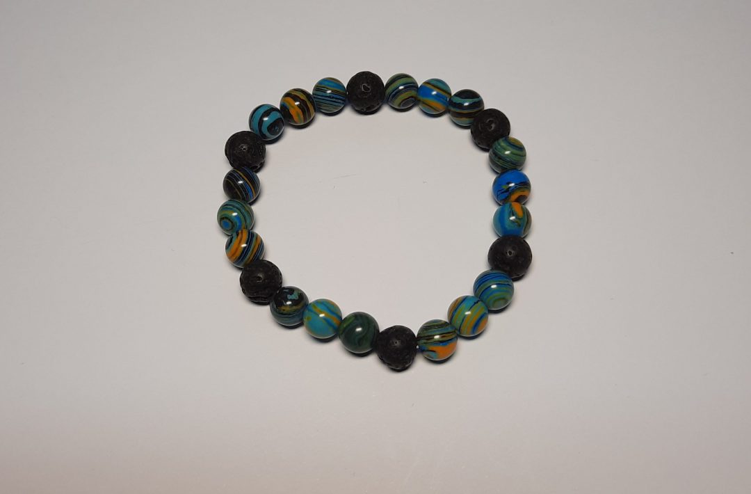 Schönes Armband aus Malachitperlen in blau-schwarz und schönen Natur Lava Perlen.