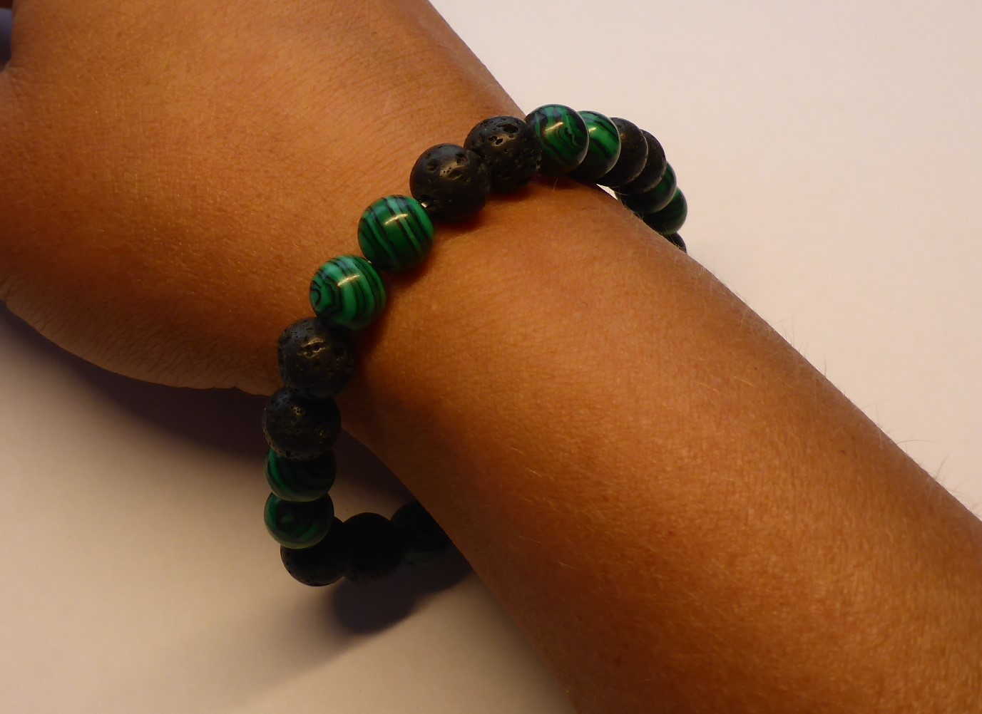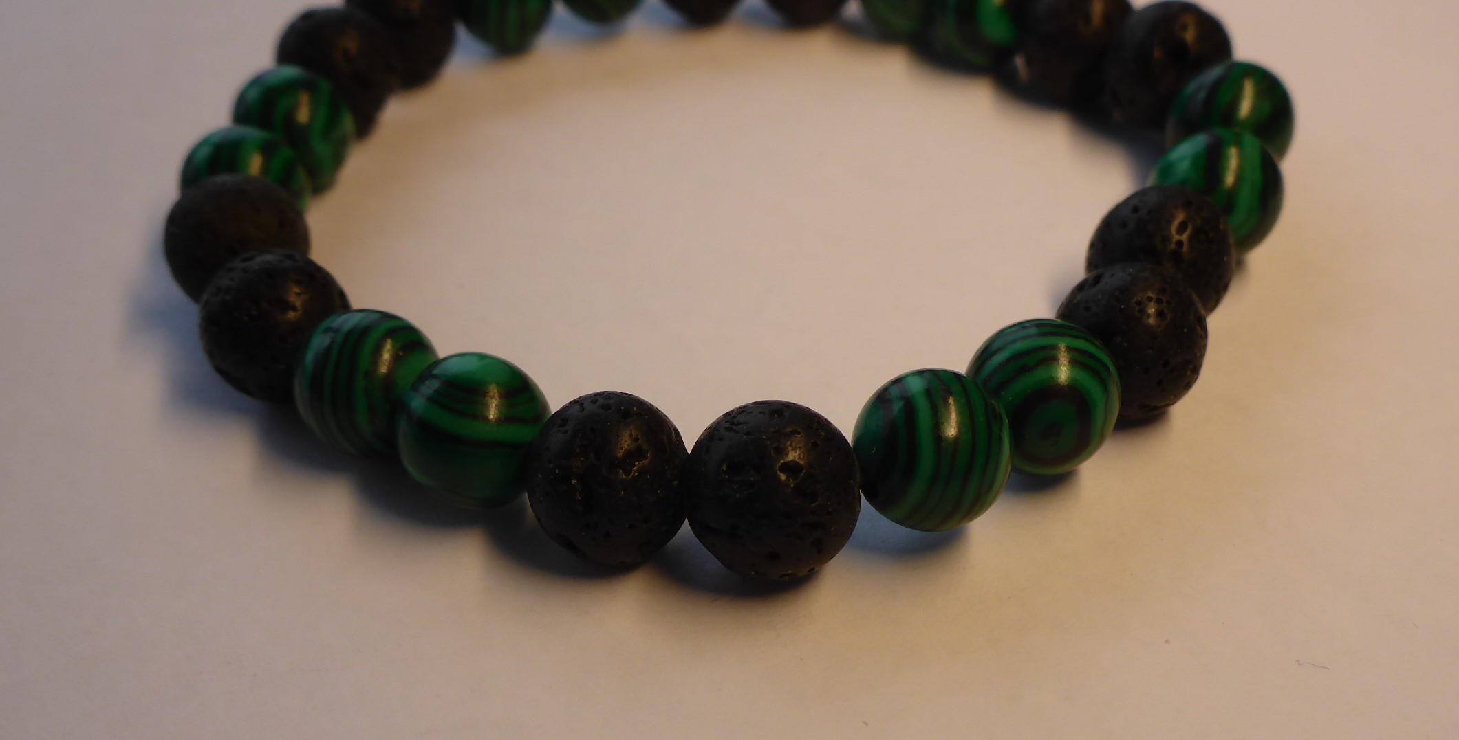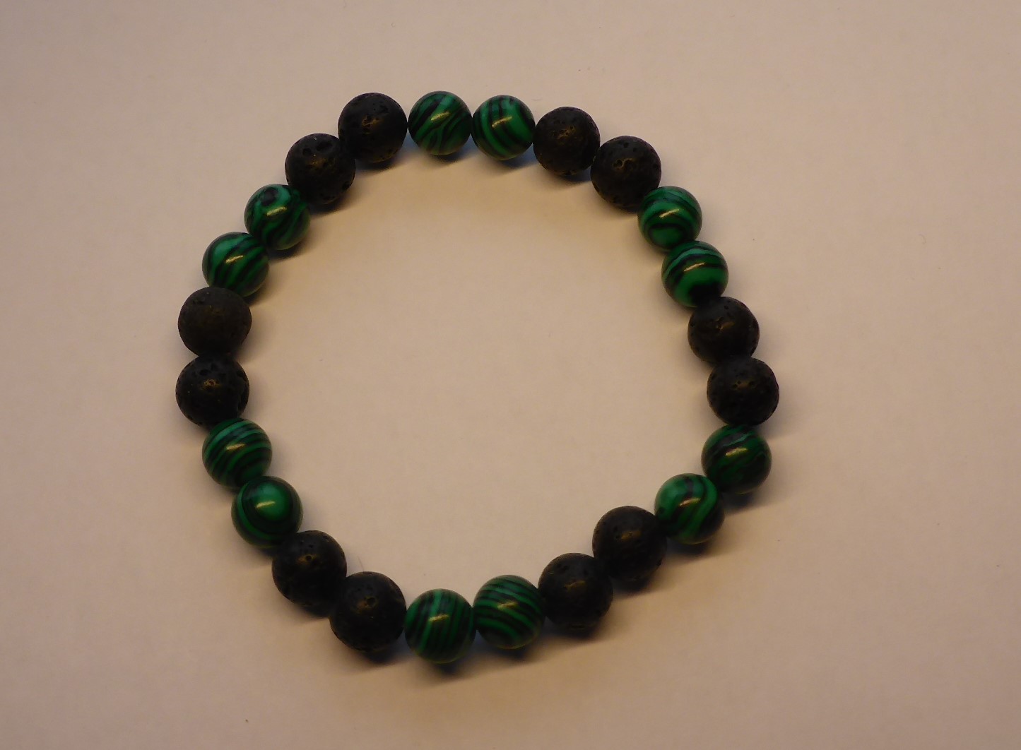 Schönes Armband aus Malachitperlen in grün-schwarz und schönen Natur Lava Perlen.